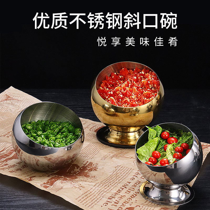 ステンレスの斜めの口の碗の球形は蓋の火鍋の店の商用の調味料の缶の自助の食器の麻辣热の調味料の小さい材料の碗を持ちます。