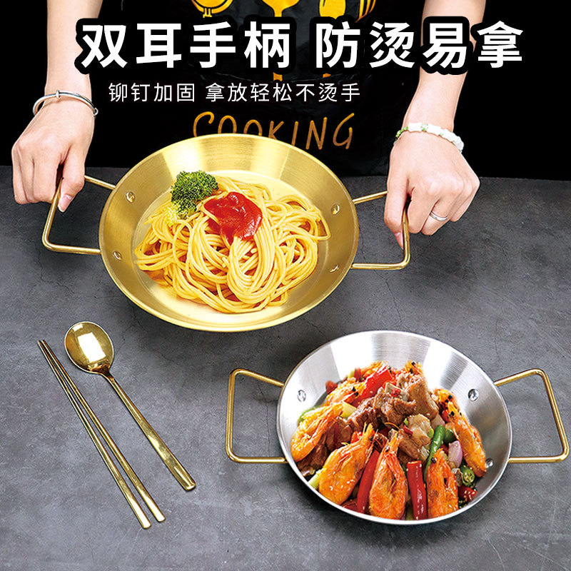 ステンレス一品乾燥鍋商用金色フライドチキン皿海鮮料理鍋韓国式部隊鍋両耳フライパン皿