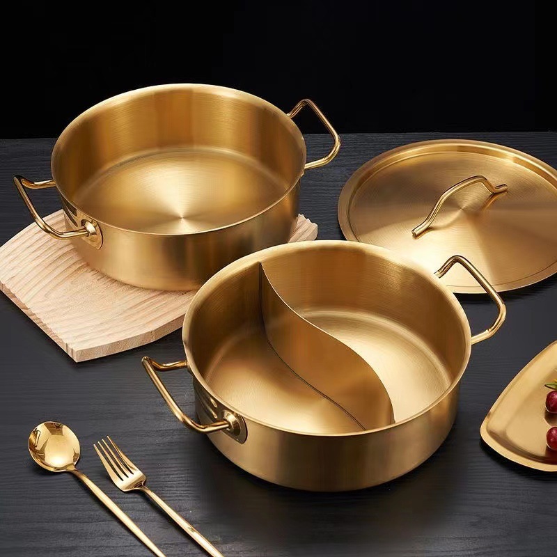 金色鴨鍋商用ステンレス鍋盆電磁ストーブ専用しゃぶしゃぶ鍋両耳大容量フライパン