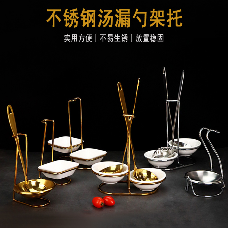 金色のステンレススプーン棚のスプーン棚の鍋のスプーンのスプーンが漏れています。