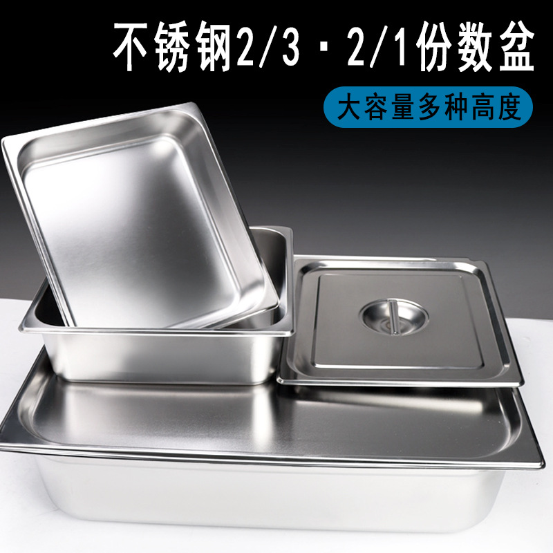 ステンレスの数鉢2/1 2/3長方形の鉢の揚げ物の特大サイズを厚くして、ゆったりとした鉢のバイキングの鉢を深めます。