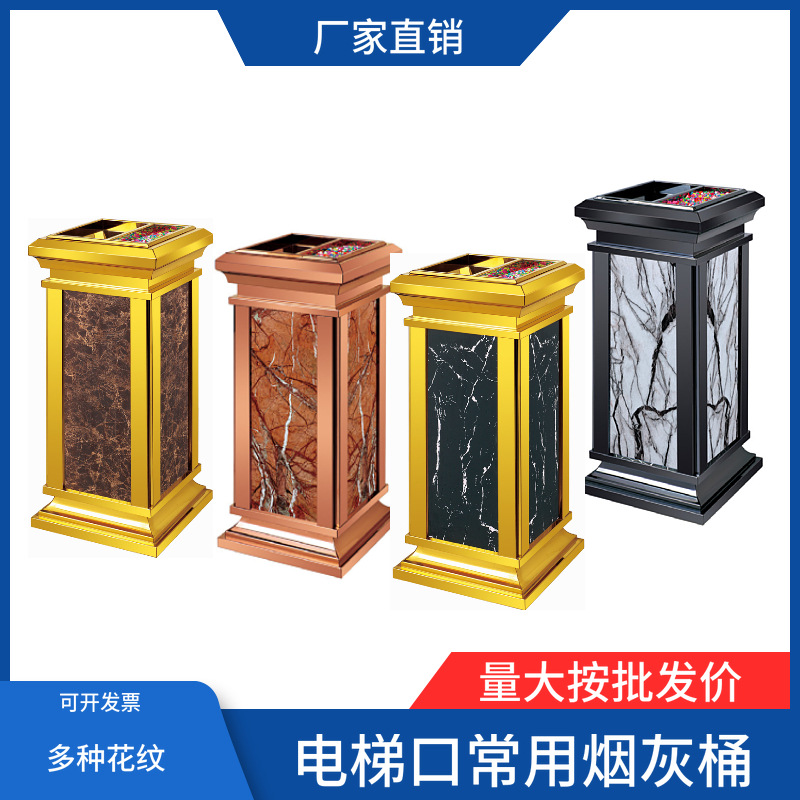 四角いリグシートの灰皿を供給します。黒い鉄はゴミ箱の廊下のグリッドのエレベーターの口を焼いてタバコの桶を消します。