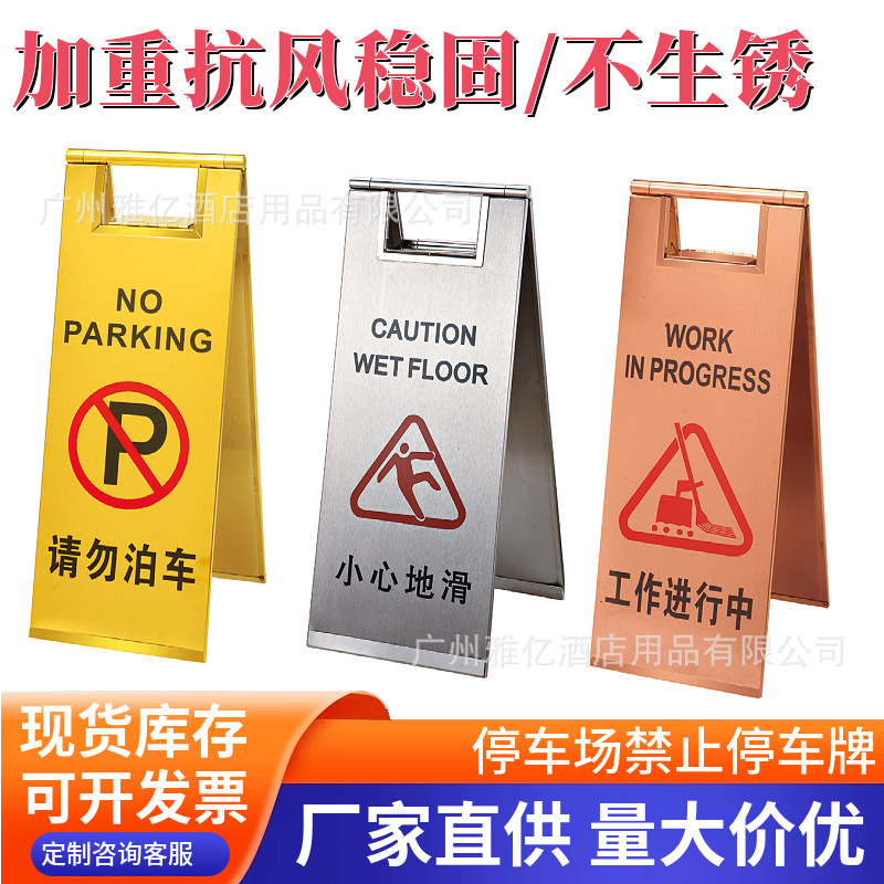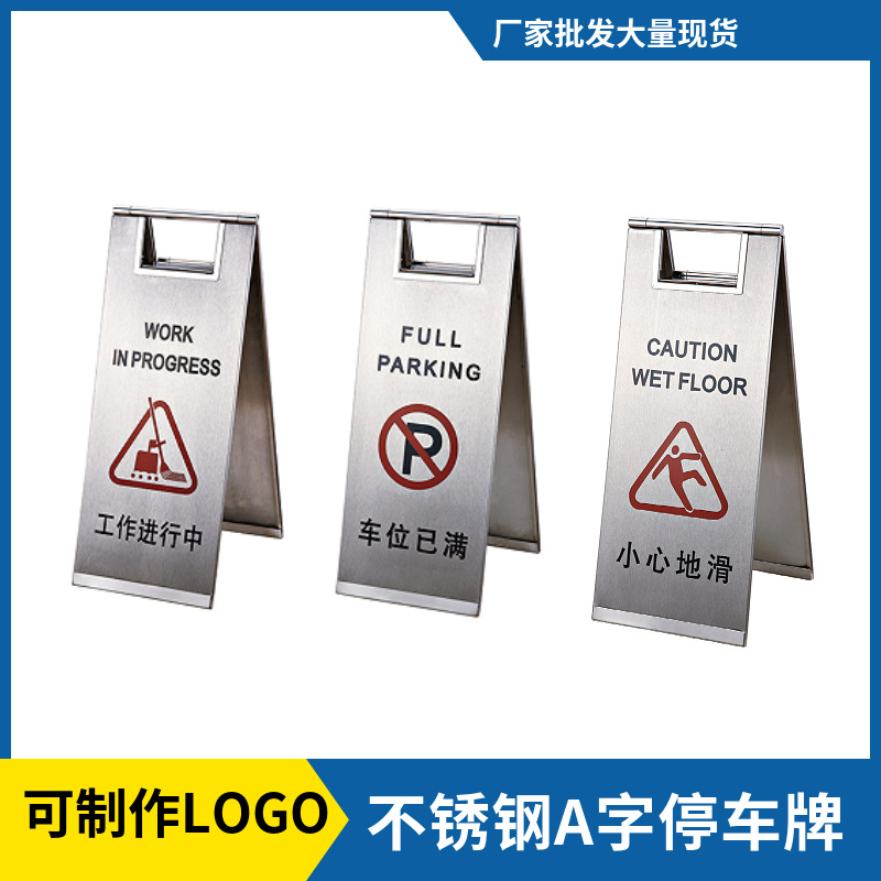 ステンレス製折りたたみA型標識、駐車禁止標識、滑り注意標識、A型ステンレス製駐車標識