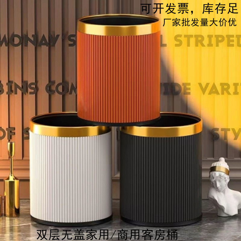 縦縞ホテル円形プラスチックゴミ箱家庭用リビングルームキッチン寝室二重蓋なし難燃客室バレル