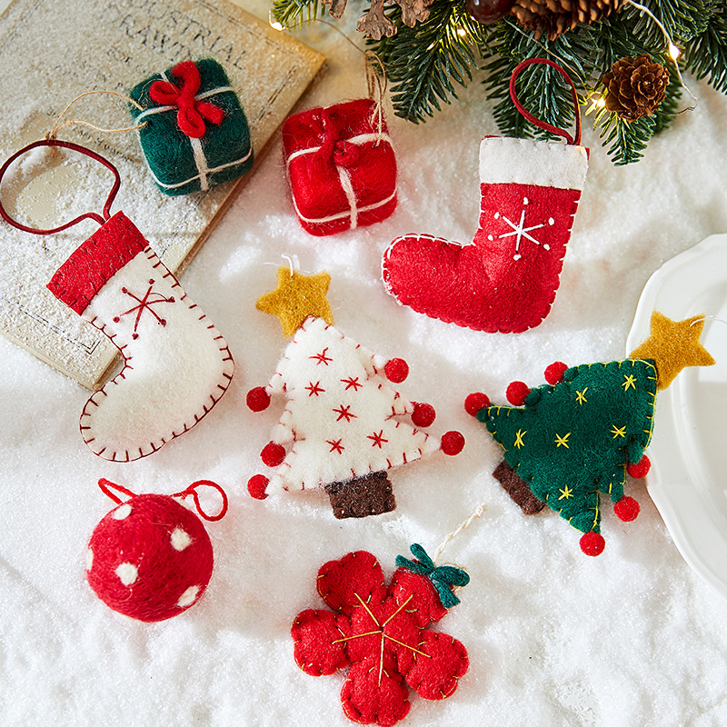 クリスマスデコレーション ウールフェルトDIY クリスマスツリー飾り 雪の結晶 クリスマスボール ジンジャーブレッドマン ペンダント クリスマス雰囲気