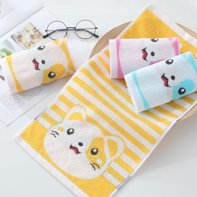 かわいい漫画のジャカードの純綿の子供のタオルの綿の赤ちゃんの洗顔タオルの幼稚園の小さいタオルは手ぬぐいの卸売りを拭きます。