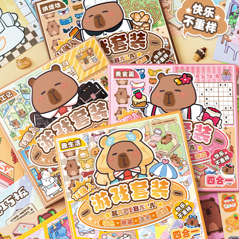 マイムとカピバラゲームセットdiy手作り本益智かわいいステッカー本静かな本おもちゃ