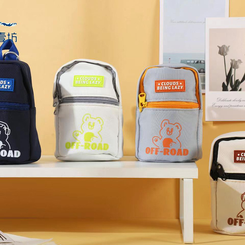 Qingyifang リラックスクマ多機能ミニスクールバッグ収納クリエイティブ小銭入れ形状収納ヘッドフォンバッグ
