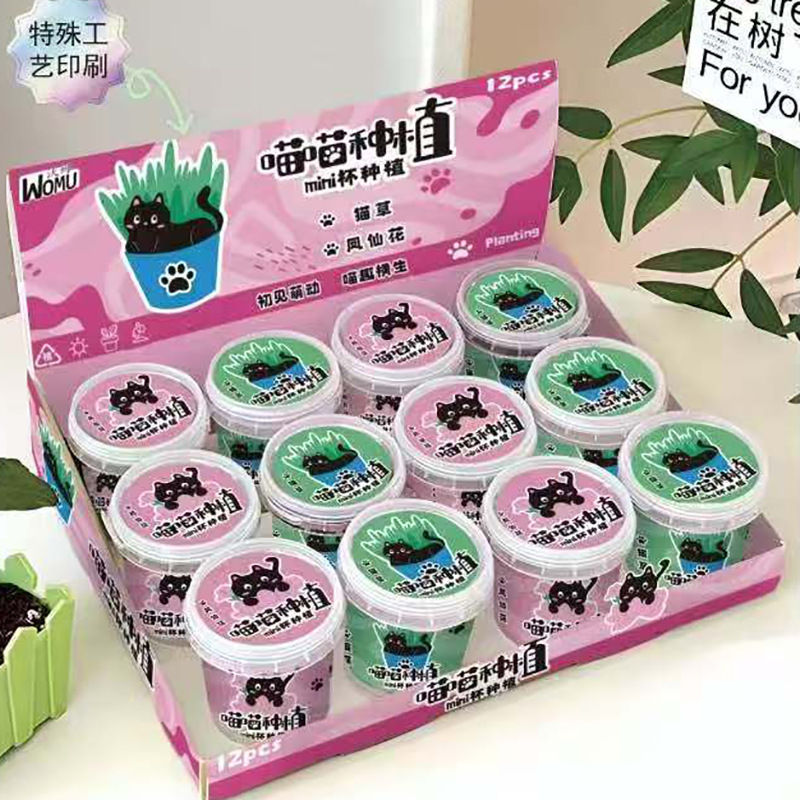 ワームmini栽培カップ (12箱/展示箱) クリエイティブ植物ブラインド箱小鉢植えデスクトップ緑植