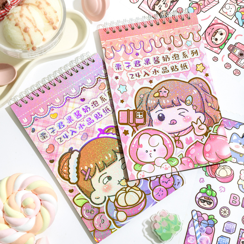 くり君ジャムミルク泡シリーズ24入クリスタルステッカーかわいい漫画少女心手帳diyステッカー素材