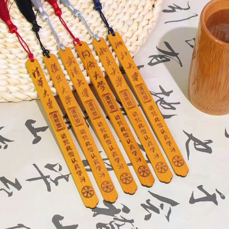 百集学習時刻竹しおり (24個/桶)学生が本を読んで作業用中国風竹しおりを書く