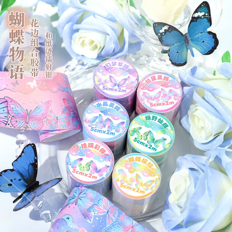 蝶物語レースセットテープ創意と紙アイロン銀レーザー手帳素材テープ装飾ステッカー