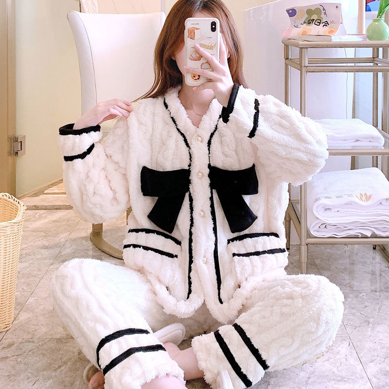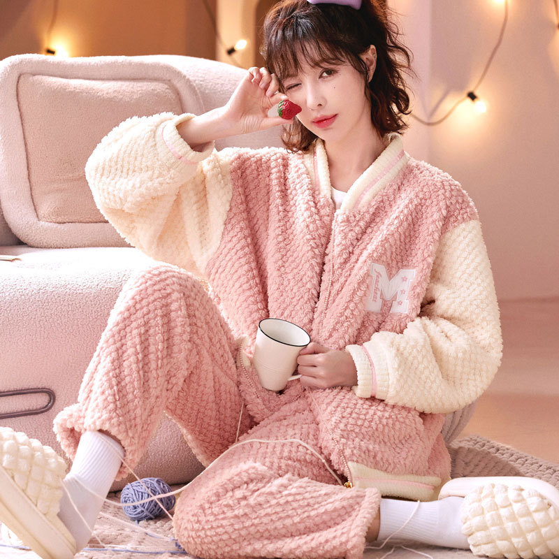 秋冬にはサンゴのベルベットのパジャマを厚くして、女性とベルベットの学生の新しいスーツがかわいいフランネルの家の服を着ることができます