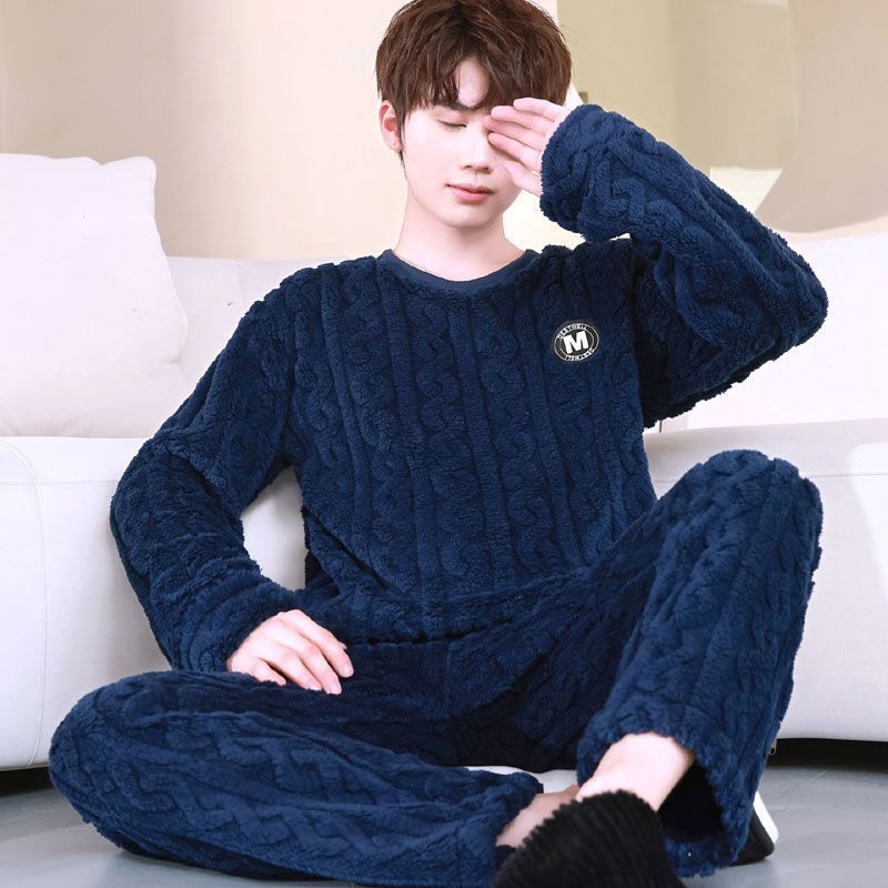サンゴのパジャマ男性冬のフランネル長袖のゆったりした大きいサイズの男性の厚いベルベットの冬の家庭服セット