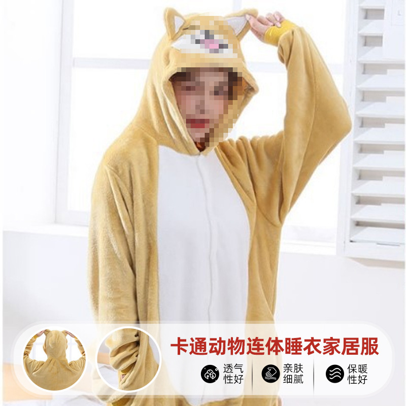 越境秋冬フランネルパジャマ漫画ホーム服サメの連体服の新型動物の演出服はトイレ版のようです。