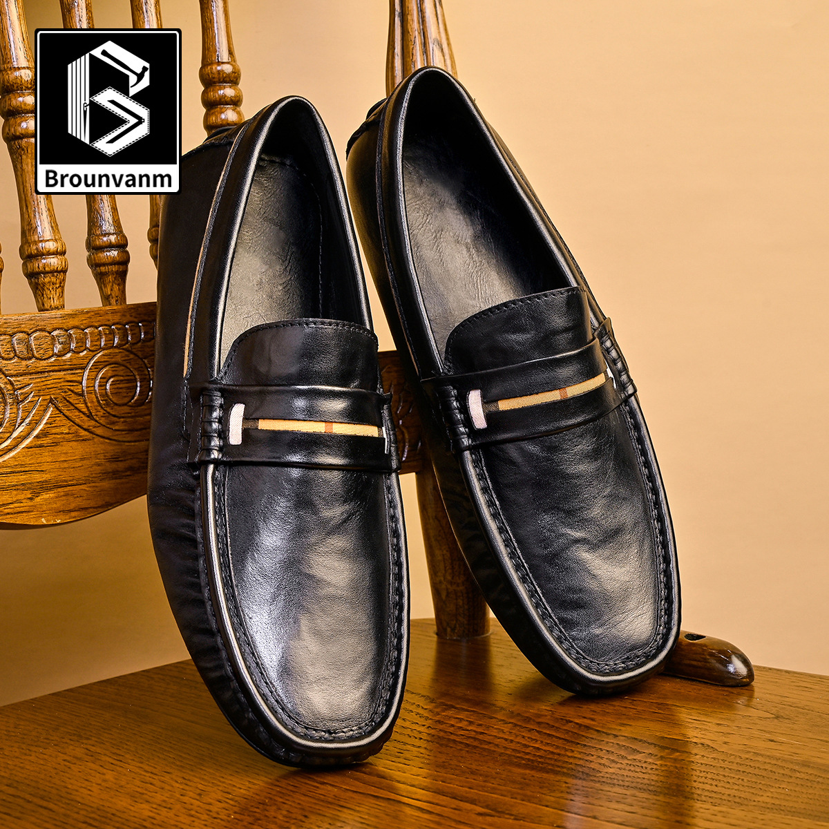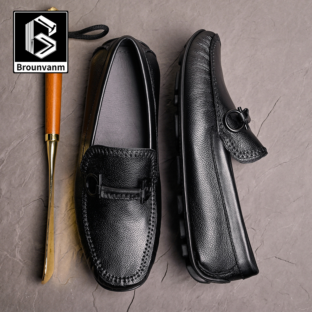 男性の本革牛革カジュアル革靴ファッションソフト底一足で豆の靴を漕ぐソフト皮は車で足の靴をセットします。