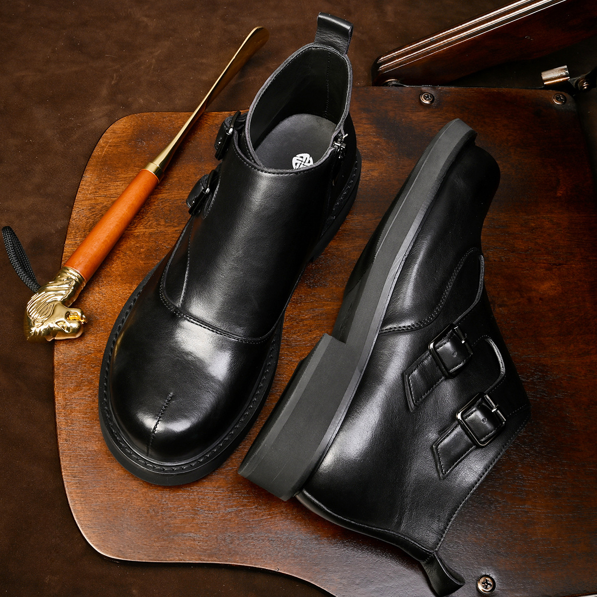 プラチナビジネスカジュアルチェルシー男性靴本革トレンドブーツ英倫風側ファスナー馬丁靴ソフトブーツ