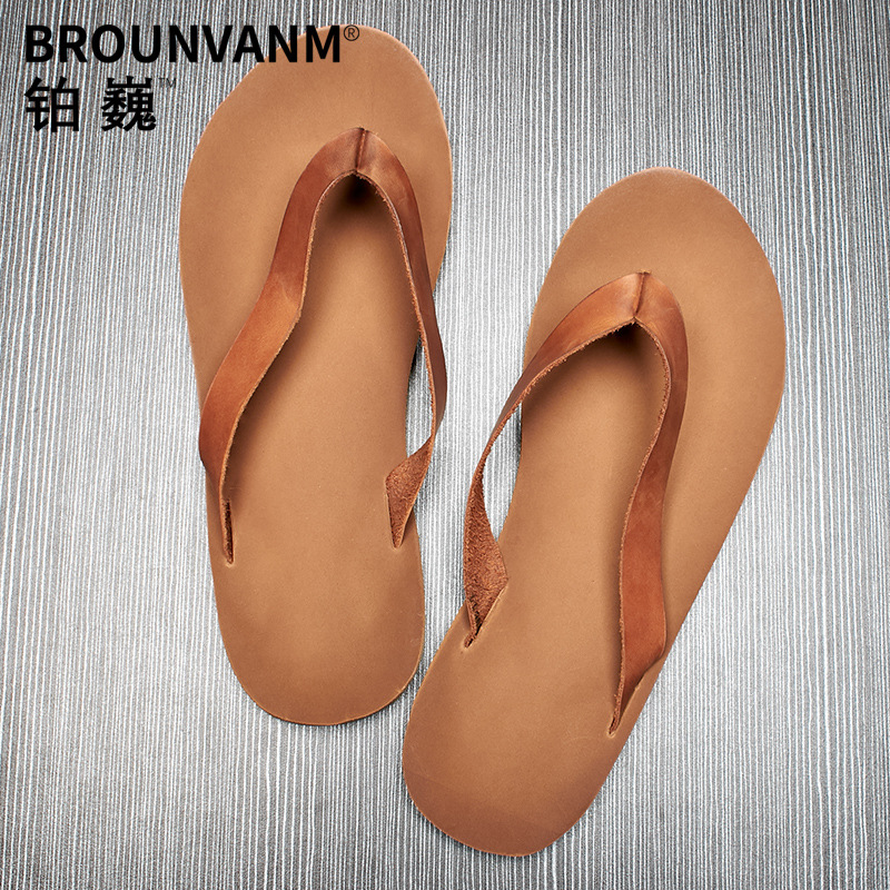 プラチナの雄大な本革の字は男性の夏の外でスリッパの室外の滑り止めの潮流の冷たいスリッパの柔らかい底の砂浜の靴を引き延ばします。