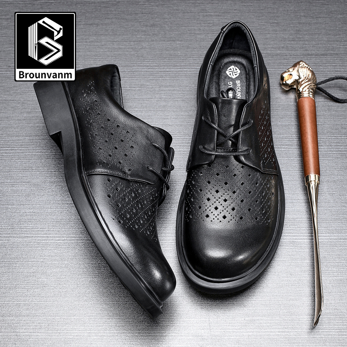 プラチナの夏の男性靴の通気性のあるビジネス男性の透かし彫りのファッション靴
