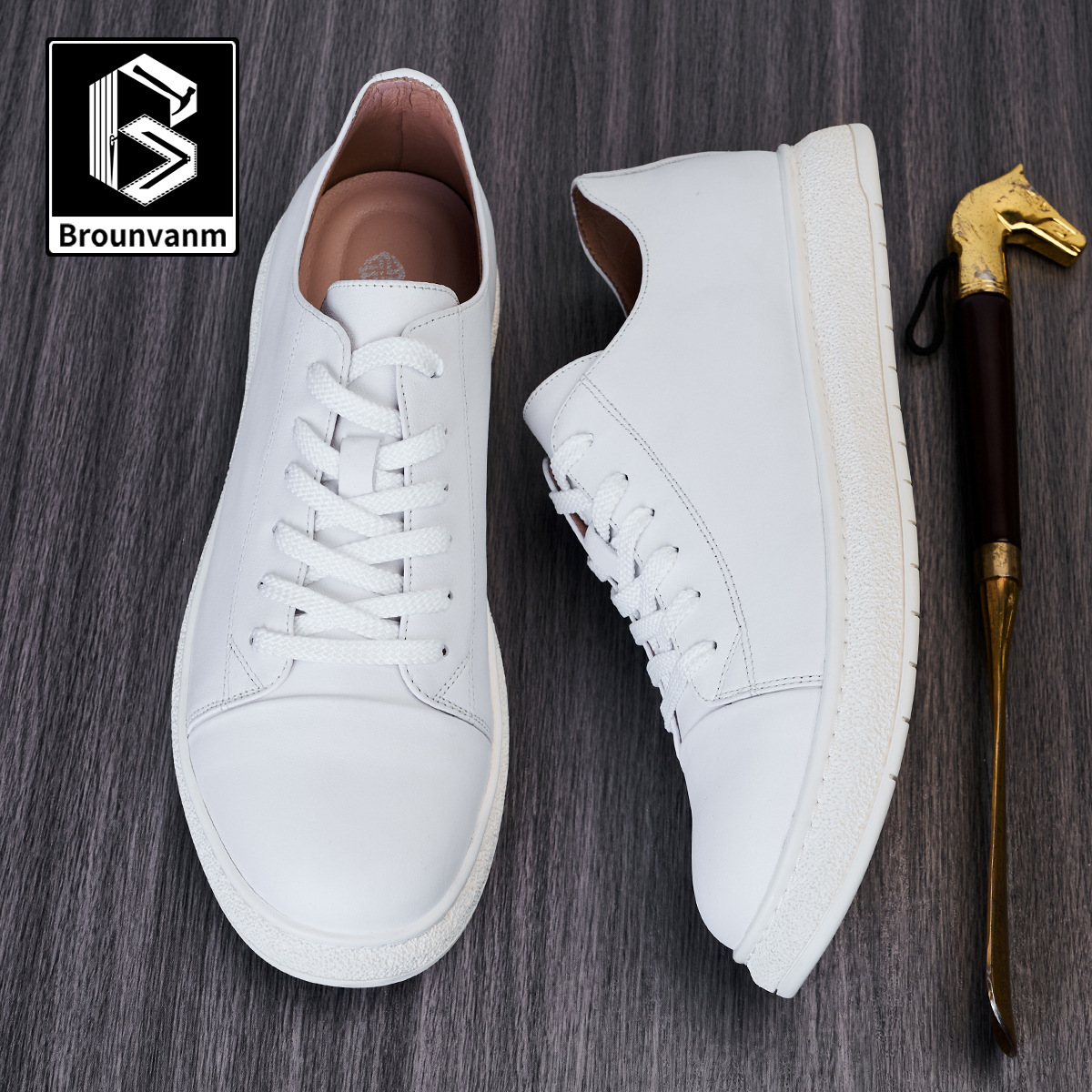 広州頭層牛革男靴ヨーロッパ駅夏真皮スケート靴通気軟底白靴男性カジュアルシューズ