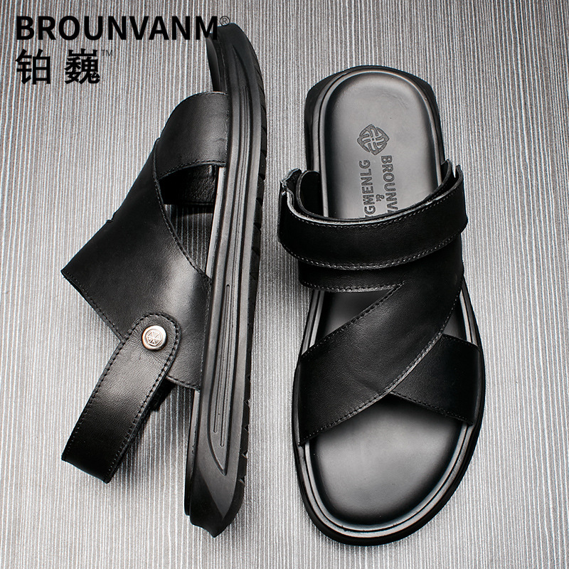 プラチナ男性真皮スリッパ一字引き男マジックテープ外着潮夏室外2020新型滑り止めソフト底