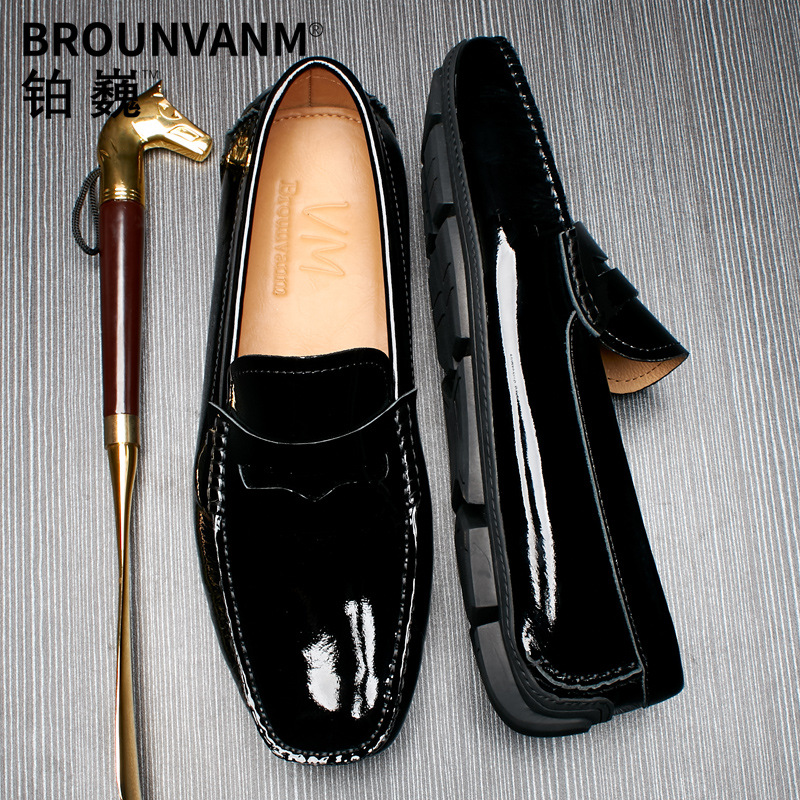男性の豆の靴の本革の韓国版の柔らかい底のカジュアルな靴の男性の夏の通気性の男性の靴の2019の漆の皮の車の靴