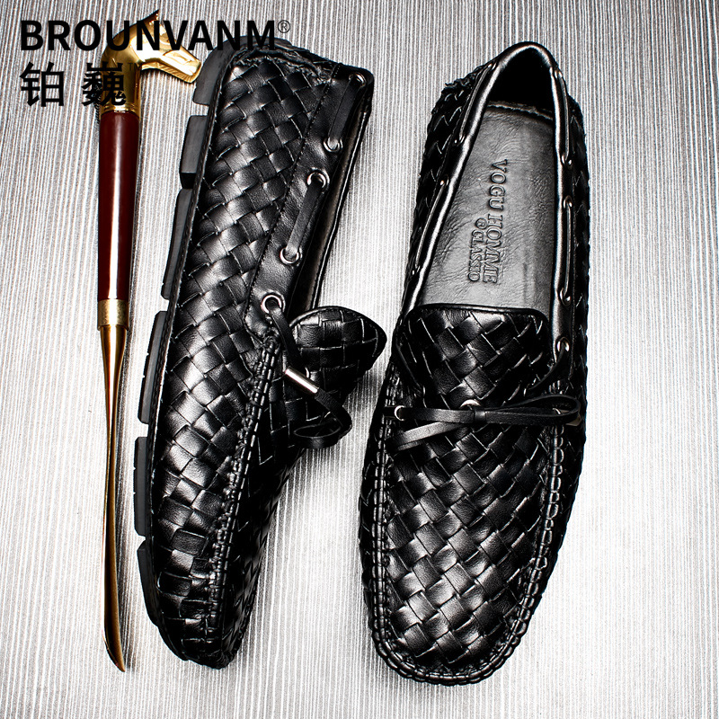 夏の通気性手織り豆靴男性カジュアル革靴真皮運転靴韓国版トレンド男性靴