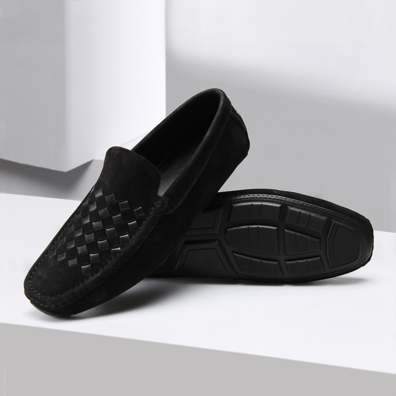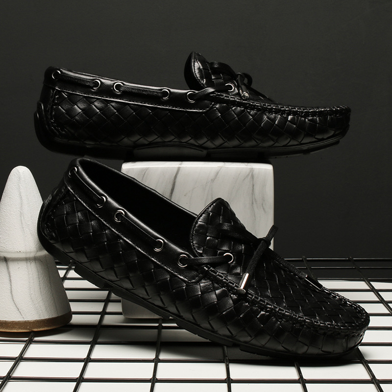 足一本革編み男靴怠け者靴潮革靴単靴手作りの頭層牛革英倫車豆靴