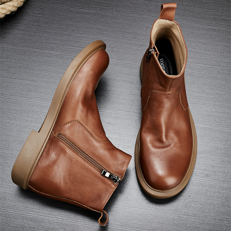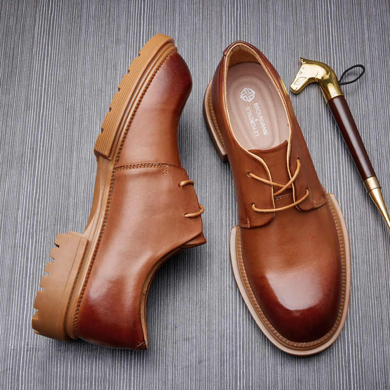 ビジネスチェルシー男性ブーツ高組ショートブーツ復古マーティンブーツ男性革ブーツ軟底英倫厚底ブーツ茶色