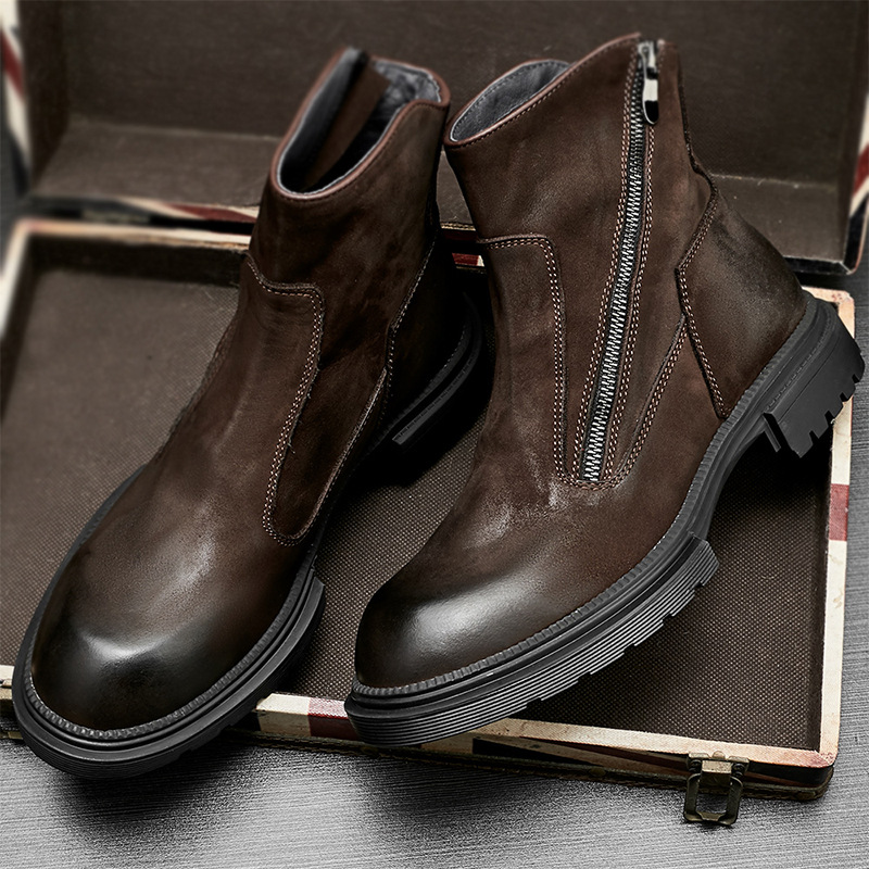 男性の冬にベルベットの本革カジュアルなジッパーのチェルシーブーツの丸い頭の柔らかい底の英倫復古の中でマーティンブーツの男性を助ける