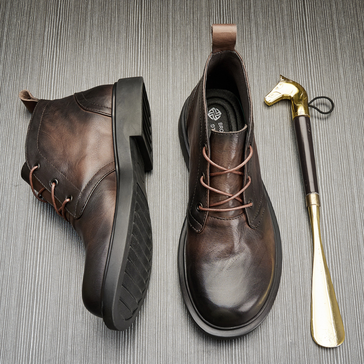 本革チェルシーショートブーツ英倫風復古機関車厚い底本革マーティンブーツ男潮工装大頭高助靴