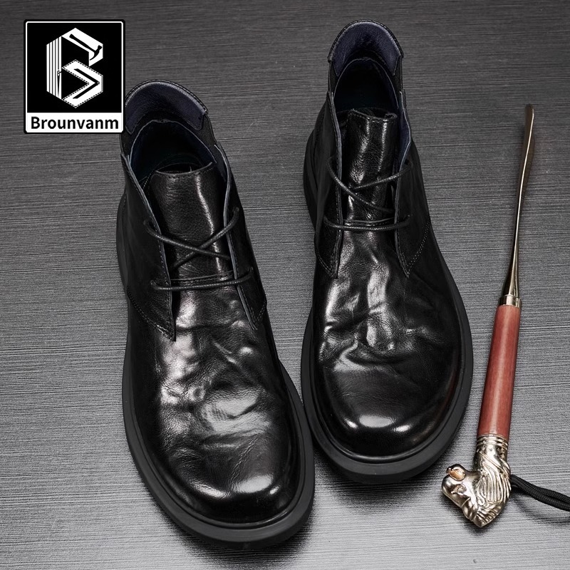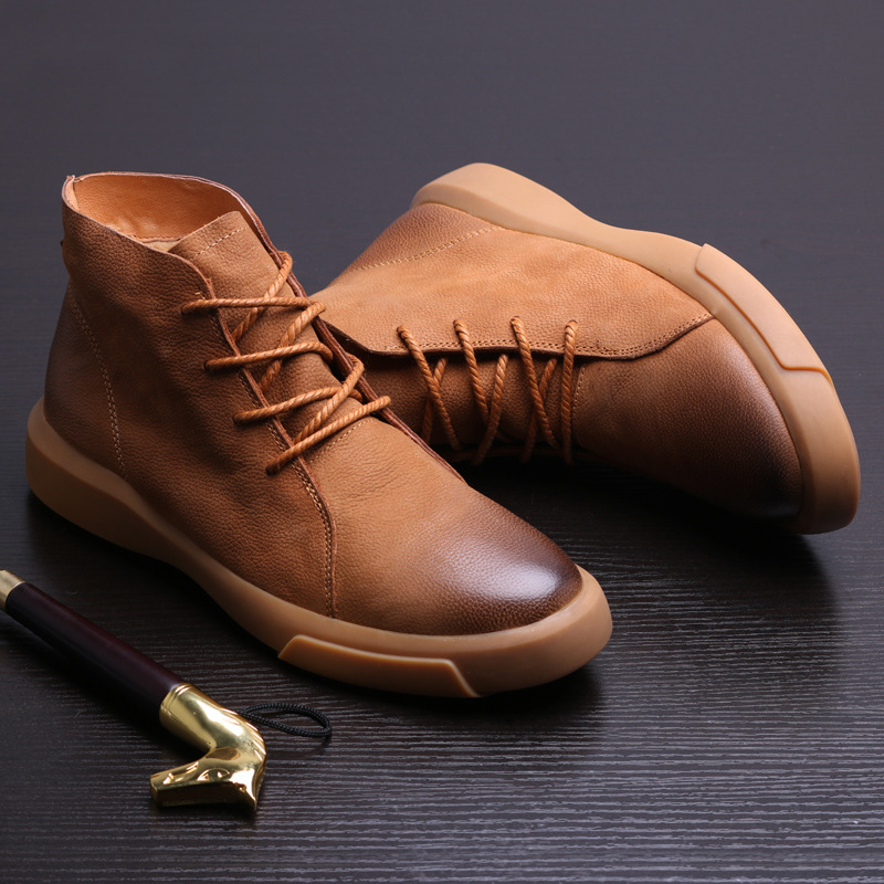 プラチナの雄大なマーティンの靴の男性の秋冬の中で柔らかい底のブーツのファッションのひもの靴のビジネスのレジャーの青年の潮流の皮の靴を手伝います。