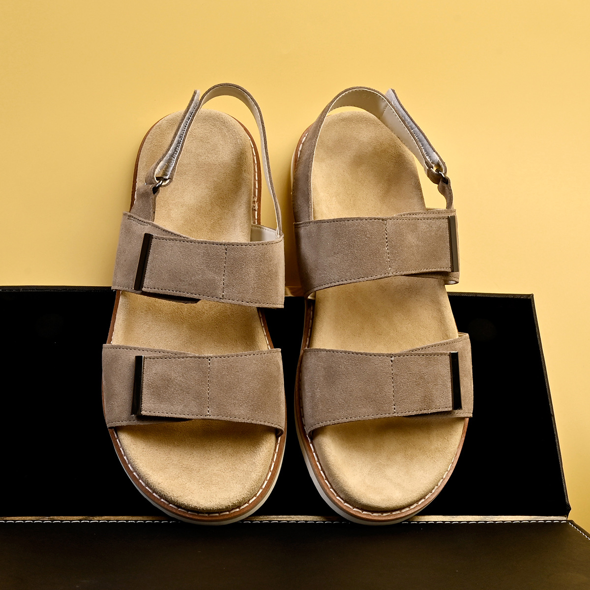 本革サンダルメンズ 2025 夏アウトドア牛革サンダルカジュアルノンスリップシューズ通気性のある多用途ビーチシューズ