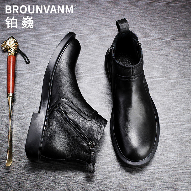 チェルシーブーツ男性ファスナー本革マーティンブーツ男性英倫風男性ブーツ冬ベルベット保温ブーツショートブーツ