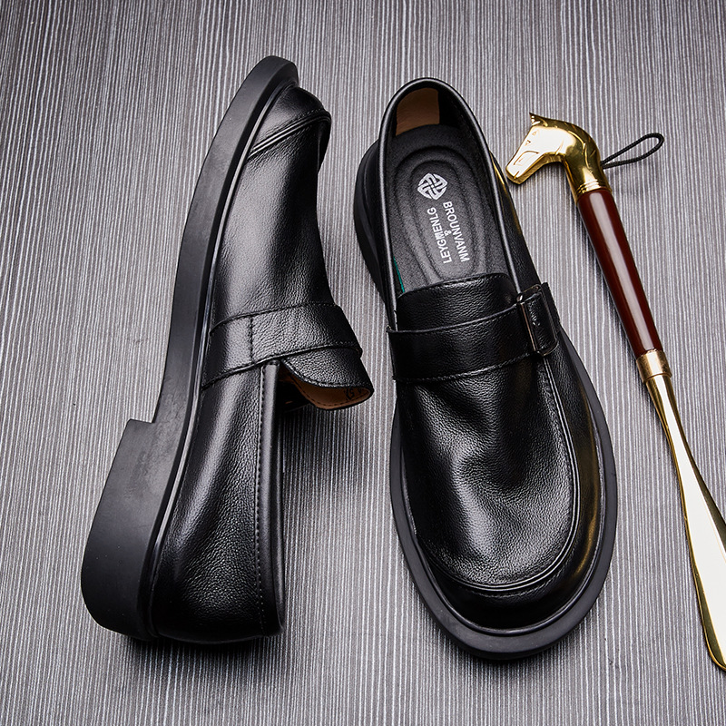 プリクラの靴の厚い底の楽福の靴の男の2021春の新作の1足は男の靴の丸い頭の怠け者の本革のレジャーの靴を漕ぎます。