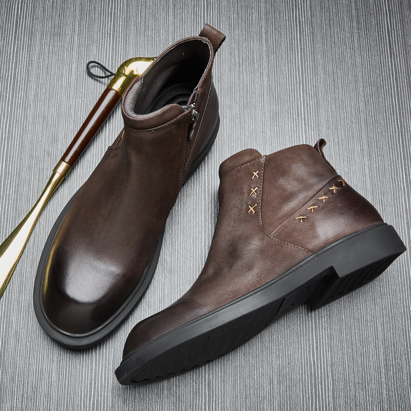 秋冬カジュアルチェルシーブーツ男中工装ショートブーツ英倫レトロ本革マーティンブーツ
