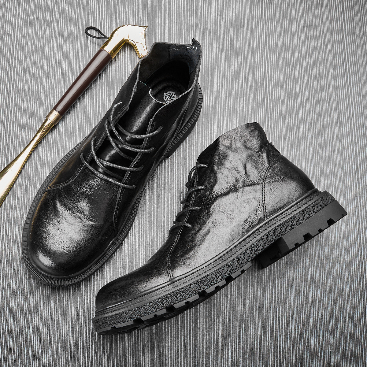 2022秋冬の新型本革の厚い底はマーティンの靴の男性の丸い頭の柔らかい皮の英倫の風の高い仕事の靴の男性の靴を持ちます。