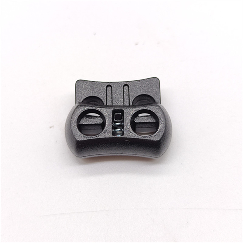 プラスチックの平ひもの靴のひもの双穴の調節のスプリングの円柱形の双辺のバックルのコートのひものつりの時計