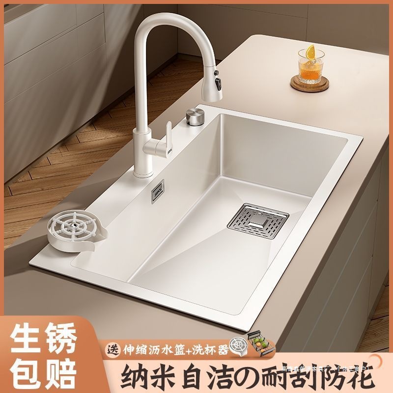 クリーム風の白い台所の水槽の大きい単槽のステンレスの野菜を洗って池のたらいを洗います。