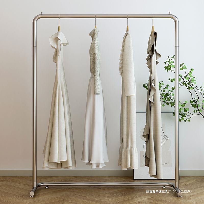 洋服店展示棚ステンレスハンガー床置き式ネット赤着地女装中島専用棚