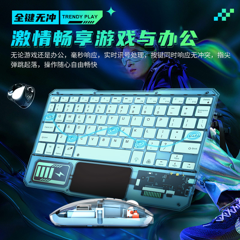 新型全透明bluetoothキーボードマウスセット無線ゲームマウスはipadタブレットに接続して通用します。