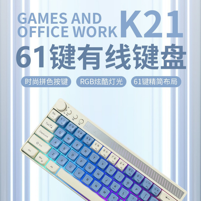 Senlonni K21 有線 RGB 有線キーボード 61 キー カラーマッチング カラフルな発光ゲーミング キーボード ライト サウンド マルチメディア