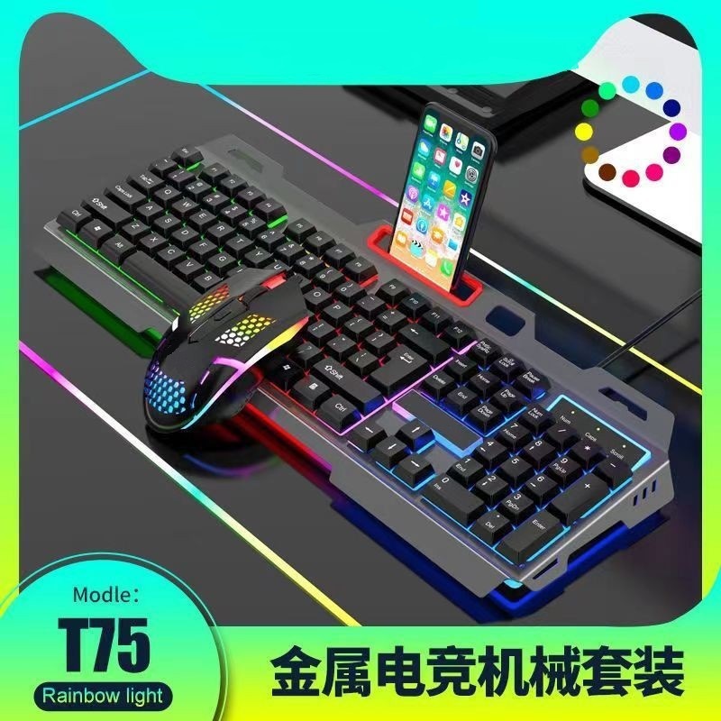 秦朗知能T750有線発光キーボードマウスセット卸売りバックライト機械手触りゲームマウスセット