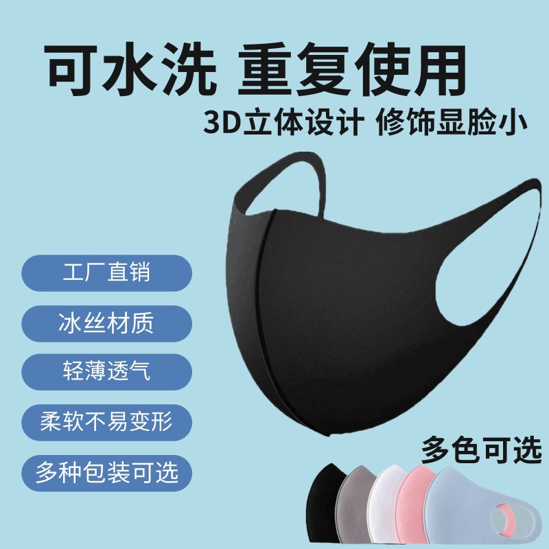 夏の薄手冷感マスク日焼け止め呼吸しやすい水洗い氷感マスクファッション立体通気氷糸マスク