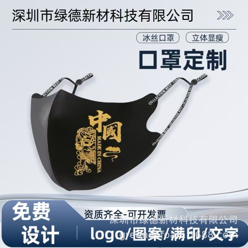 国民的トレンドの高見え調整可能な3D立体アイスシルクマスク、スリムスターと同じスタイル、中国風、洗えるブラック