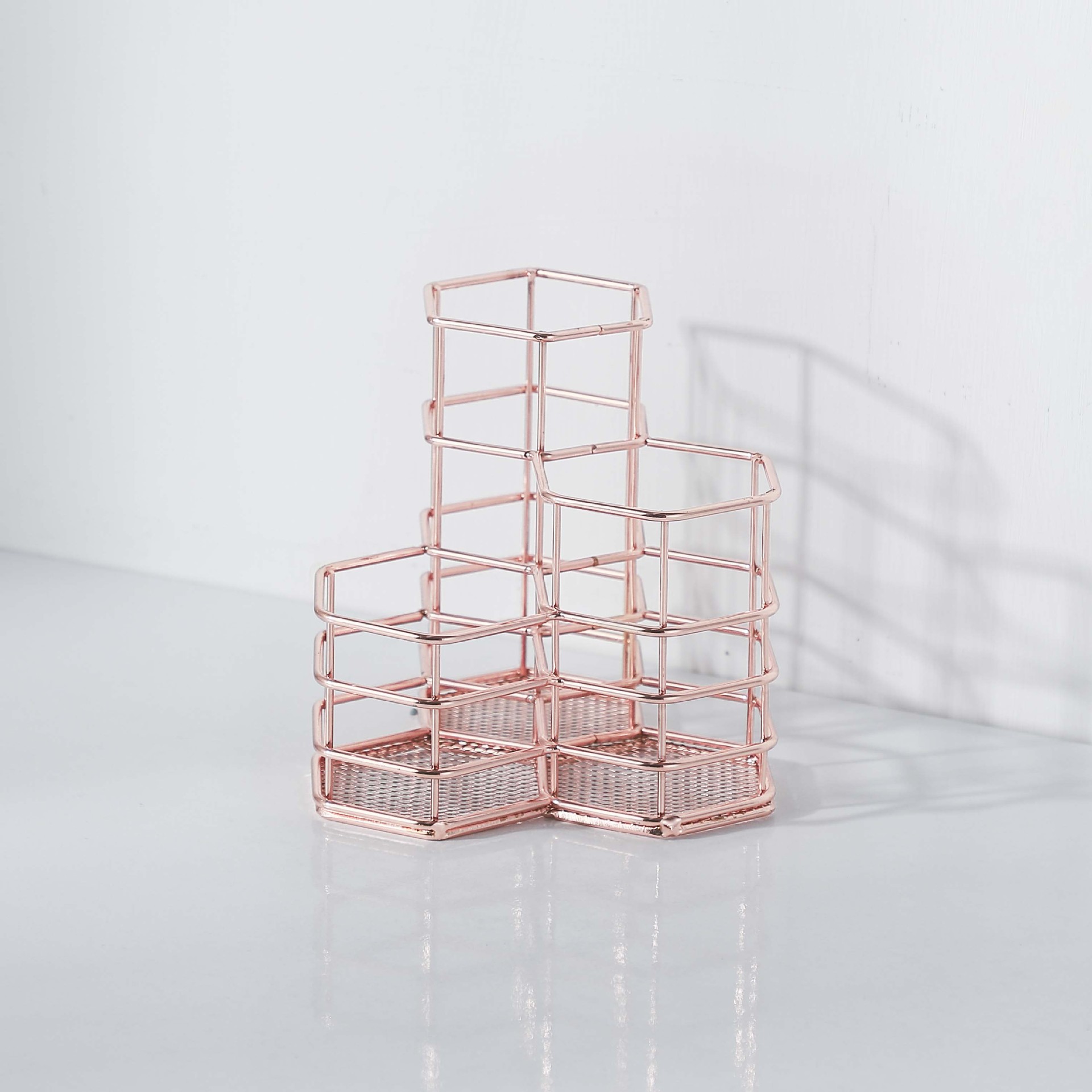 銘強北欧insバラ金金属筆立て三格メッキ化粧ブラシ収納筒オフィスデスク収納