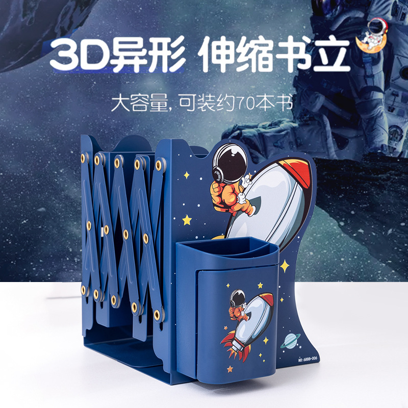 銘強は筆立ての創意を押して伸縮して本棚の金属を畳んで本棚の事務学生を見て文房具を収納します。