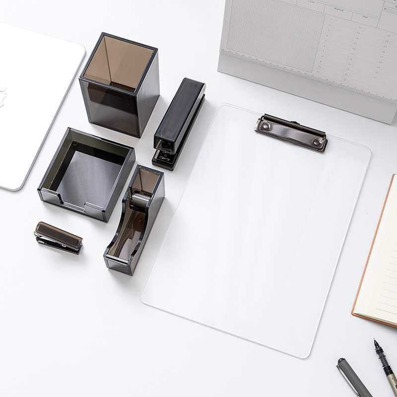銘強クロスボーダーアクリルデスクトップオフィス文房具セットアクリルペンホルダーホッチキステープホルダー便箋ケース