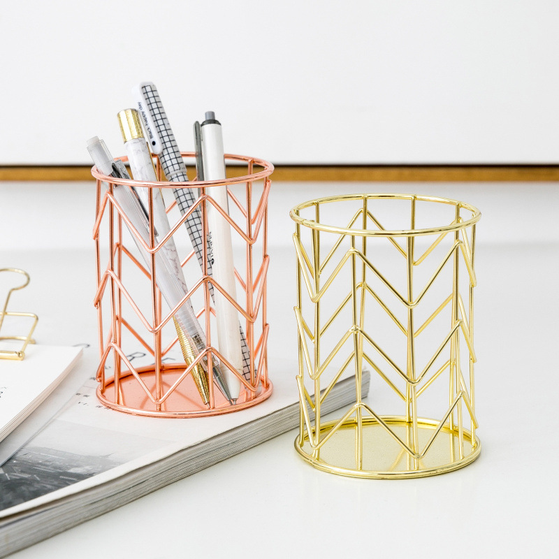 銘強北欧風ins置物金属メッキ創意バラ金置物化粧品収納筒筆立て