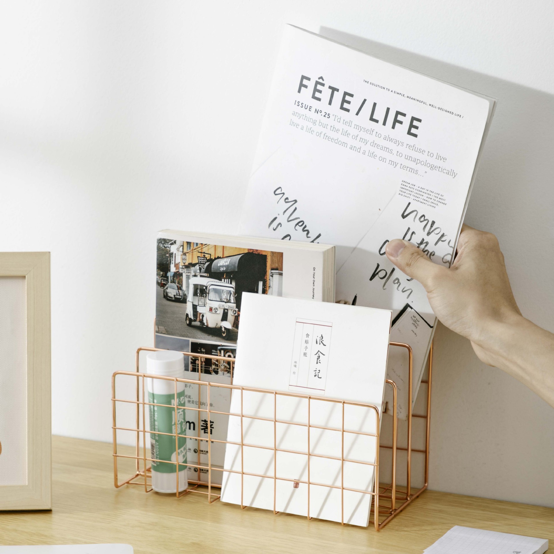 銘強北欧風バラ金書立架書簡物置棚雑誌棚オフィスデスクトップ収納整理